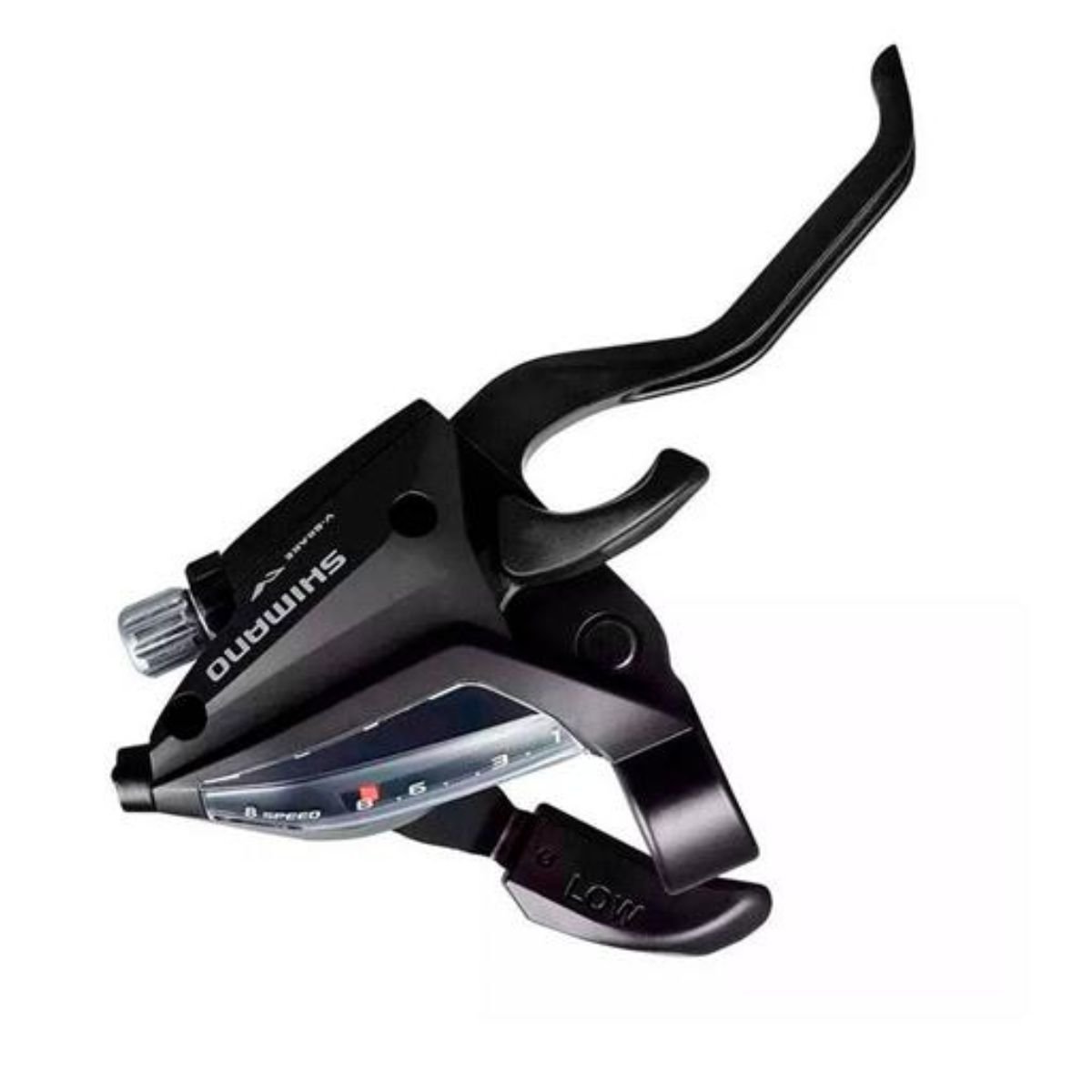A Alavanca Shimano EF500 combina câmbio e freio em um único conjunto, oferecendo praticidade, conforto e trocas de marcha precisas. Compatível com transmissões de 8 velocidades, é ideal para bicicletas urbanas, recreativas e MTB leve.