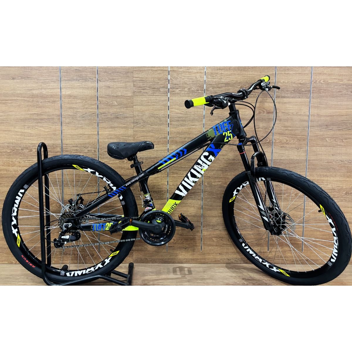 As rodas Vmaxx proporcionam maior robustez e durabilidade, e os pneus tipo Flame garantem melhor aderência e visual esportivo, tornando essa bicicleta uma excelente opção para quem quer desempenho aliado a estilo.