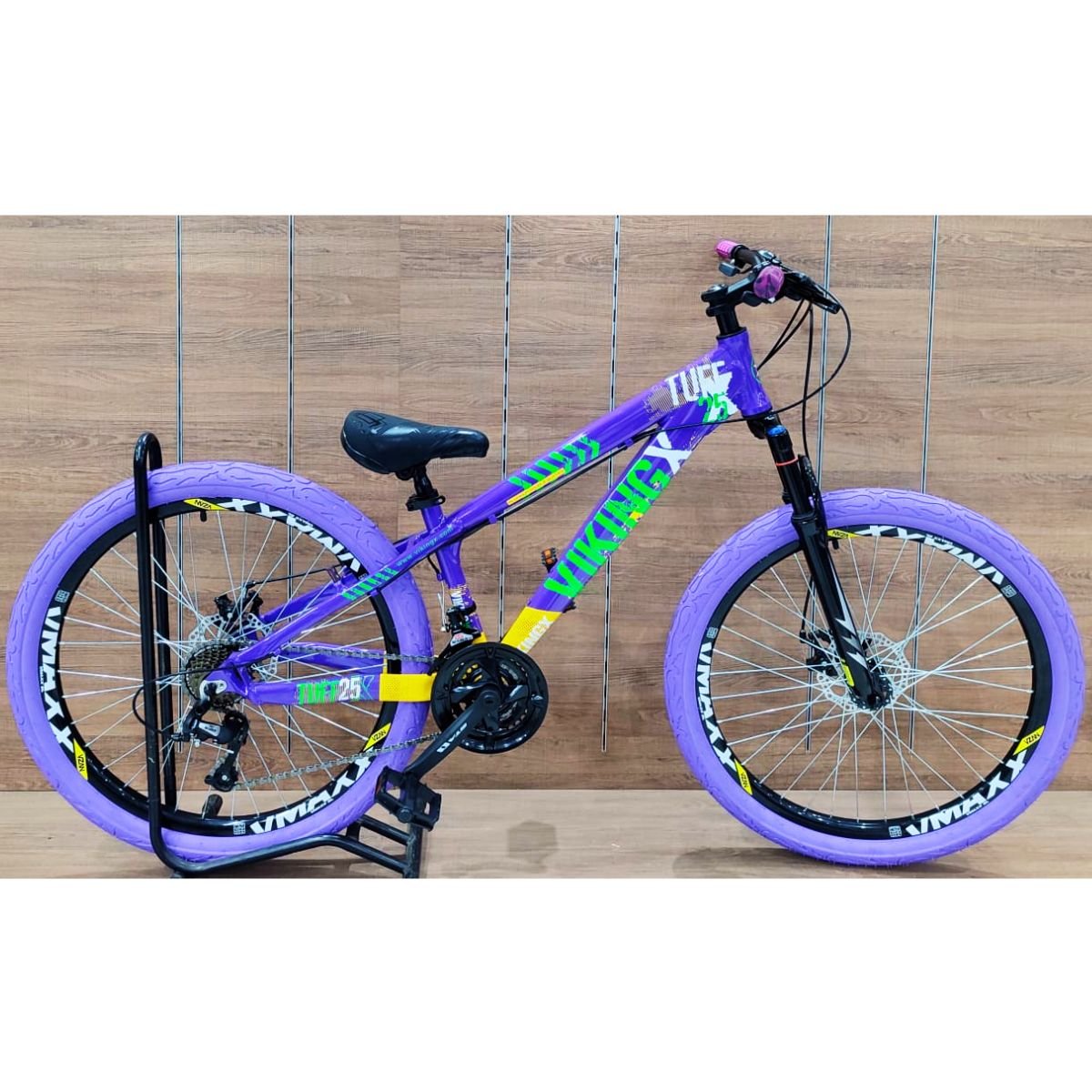As rodas Vmaxx proporcionam maior robustez e durabilidade, e os pneus tipo Flame garantem melhor aderência e visual esportivo, tornando essa bicicleta uma excelente opção para quem quer desempenho aliado a estilo.