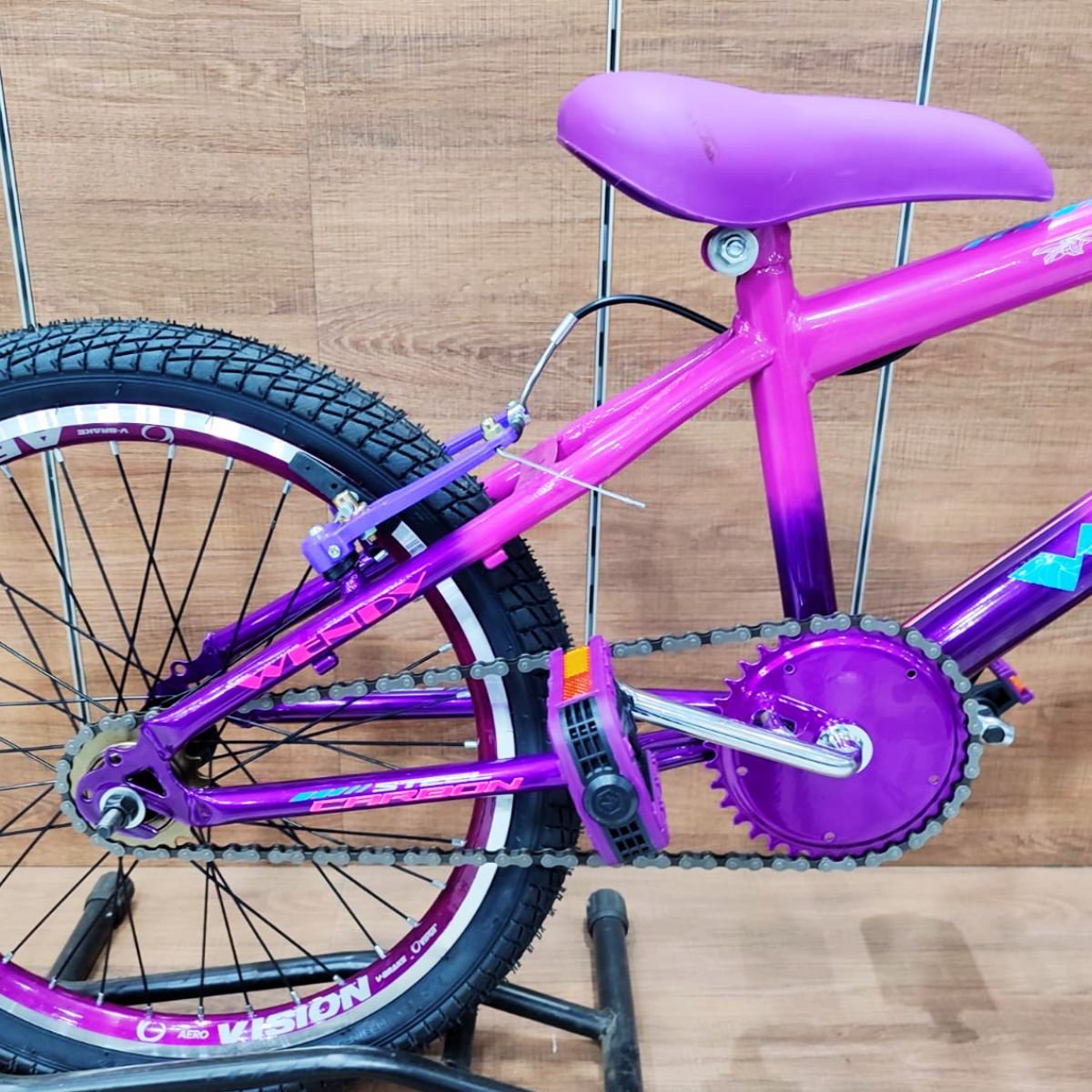 Pode se adaptar Rodinhas Laterais de apoio (não acompanha o produto ) para ajudar no aprendizado da criança.