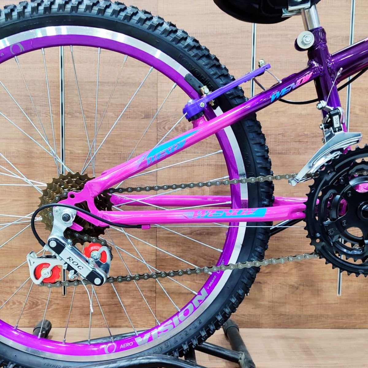 A Bicicleta Wendy Aro 24 – 18 Marchas Feminina com Cesta é ideal para jovens e adolescentes que buscam conforto, segurança e estilo para o dia a dia. Com design moderno e funcional, esse modelo é perfeito para passeios, lazer e uso urbano, oferecendo excelente desempenho e fácil condução.