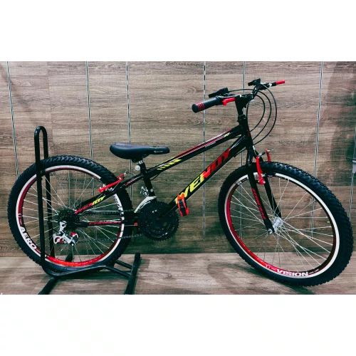 Equipada com sistema de 18 marchas, permite ajustes suaves conforme o terreno, tornando a pedalada mais leve em subidas e mais eficiente em percursos planos. Suas rodas aero proporcionam maior resistência e um visual esportivo, enquanto os freios V-Brake garantem frenagens seguras e eficientes.