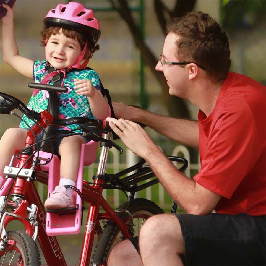 A Cadeirinha Dianteira Kalf foi desenvolvida para proporcionar mais segurança, conforto e interação entre o adulto e a criança durante os passeios de bicicleta. Instalada na parte dianteira do quadro ou no guidão (conforme modelo), ela permite que o responsável tenha total visão e controle, tornando o passeio muito mais tranquilo e prazeroso.