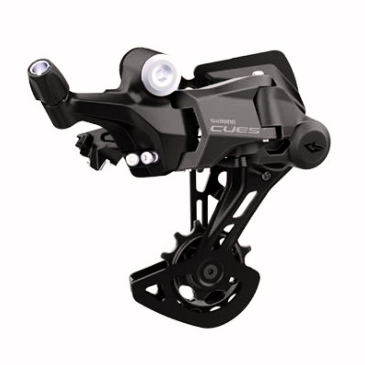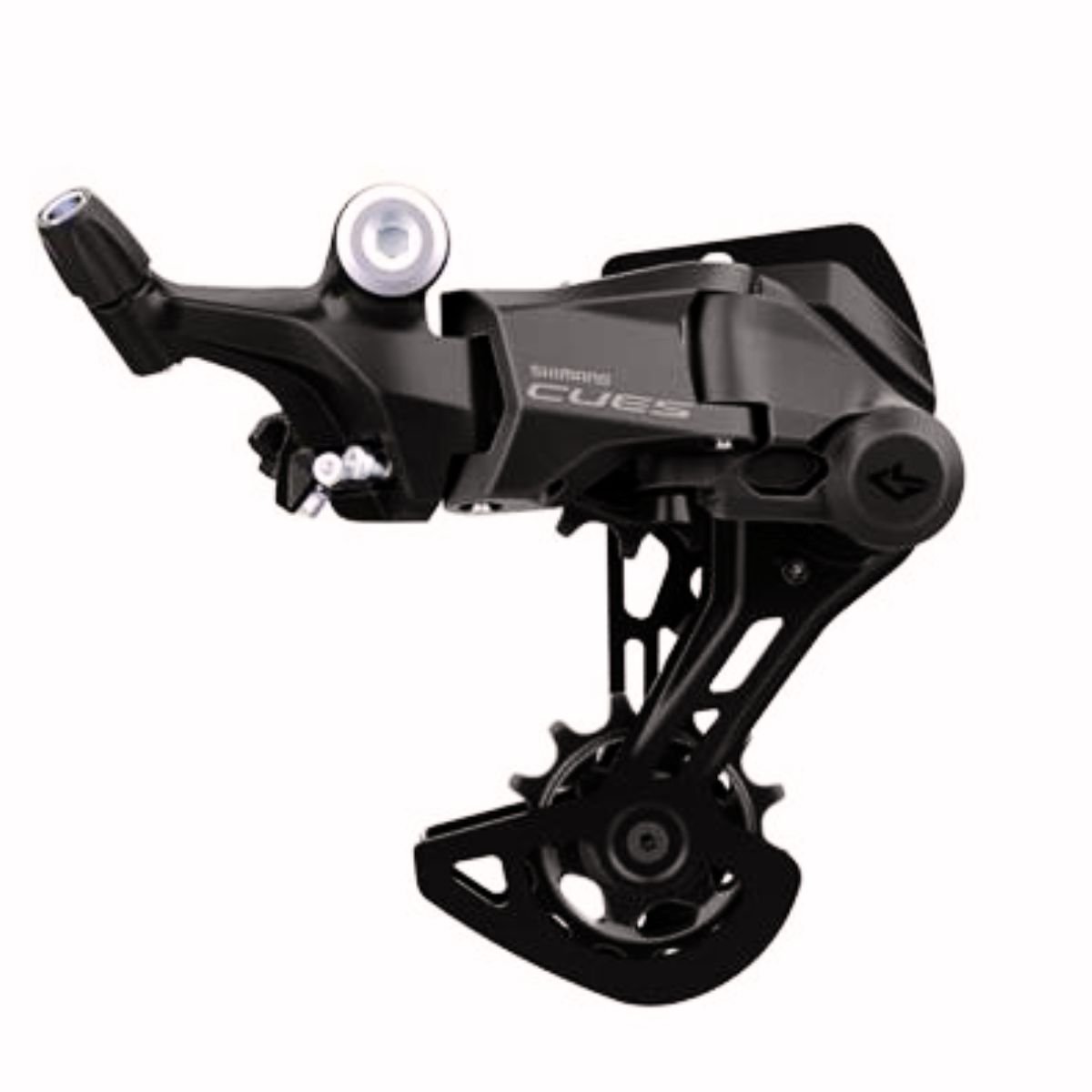 Projetado para transmissões de 9 velocidades, o câmbio traseiro CUES U4000 entrega mudanças de marcha rápidas e silenciosas, mantendo a corrente sempre bem posicionada mesmo em terrenos irregulares.