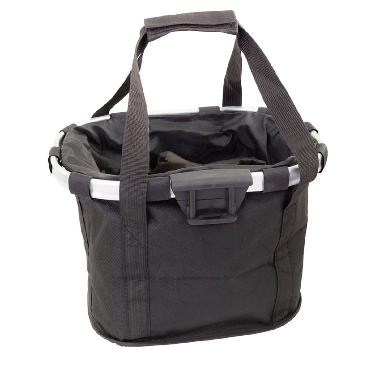 Fabricado com materiais duráveis, combina poliéster, alumínio e polietileno, garantindo leveza, firmeza e longa vida útil. Seu design funcional na cor preta combina perfeitamente com diferentes estilos de bicicleta, seja para uso urbano, lazer ou pequenas compras.