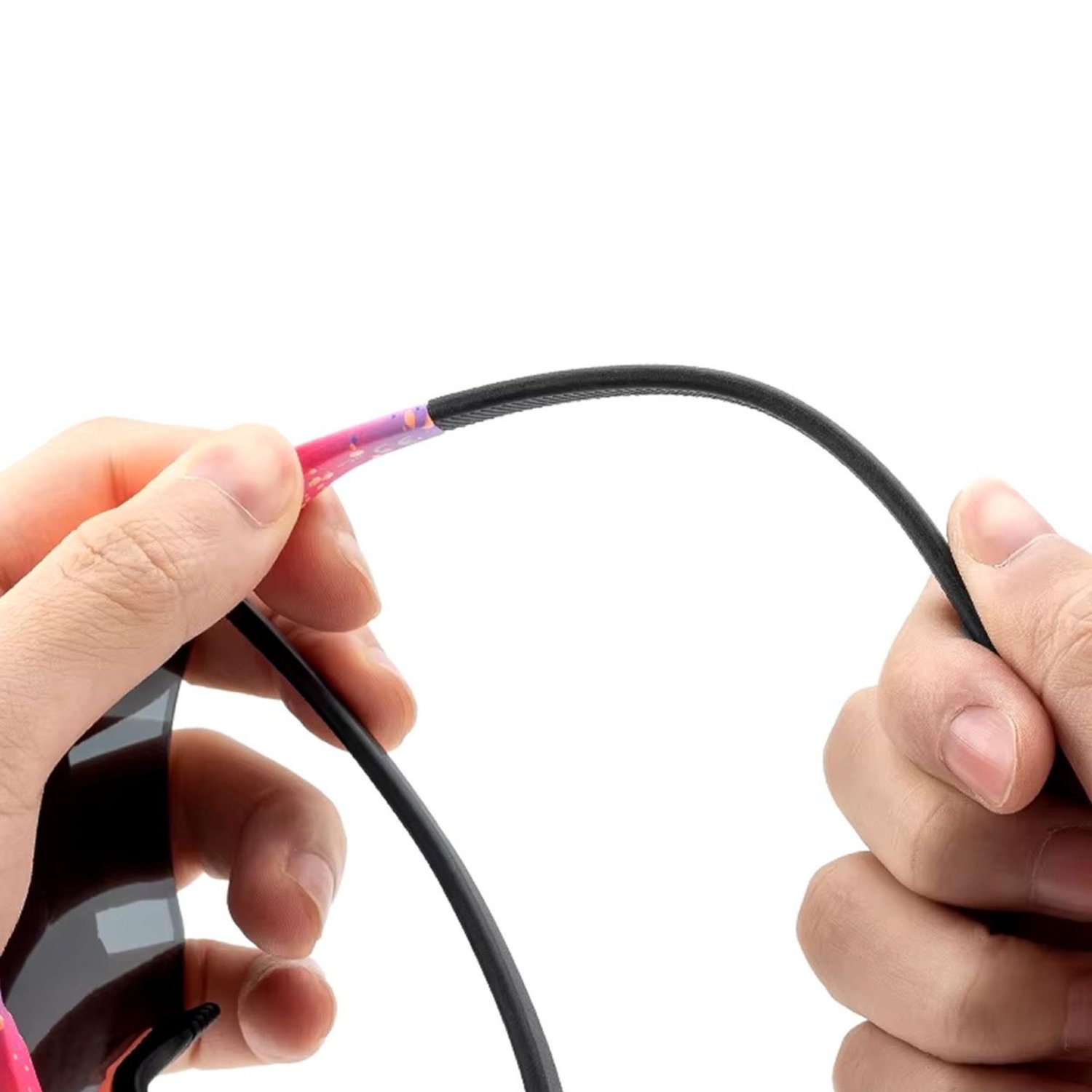 Design esportivo com acabamento moderno em rosa e lentes roxo espelhadas